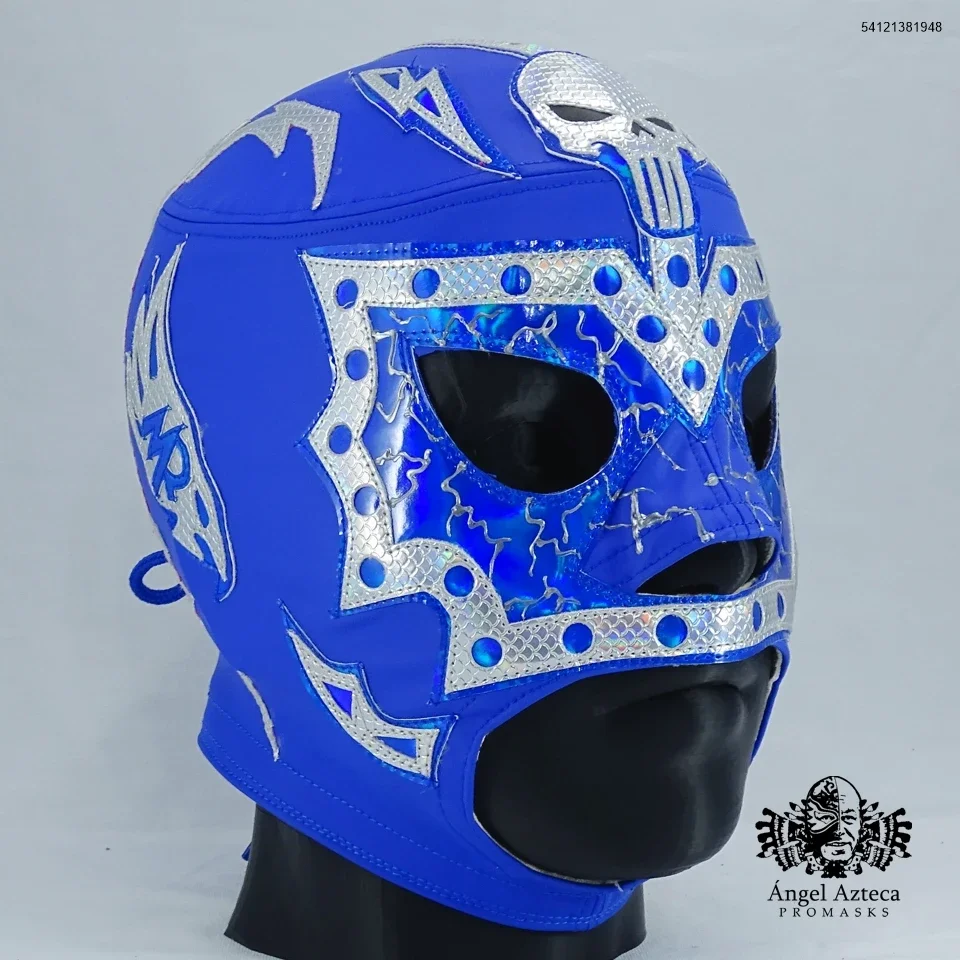 Mascara profesional manufacturada en tactopiel con aplicaciones en policharol negro, polipiel rosa. amarre de agujeta, tamaño estandar grande.